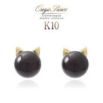 K18YG ホワイトトパーズ ねこピアス